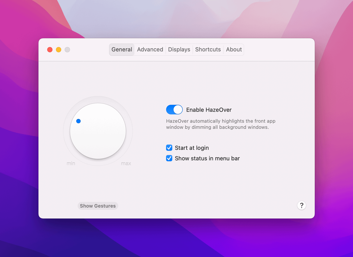 Dims the apps and windows behind your current active app or window. I really enjoy it because it removes visual noise and helps me focus.