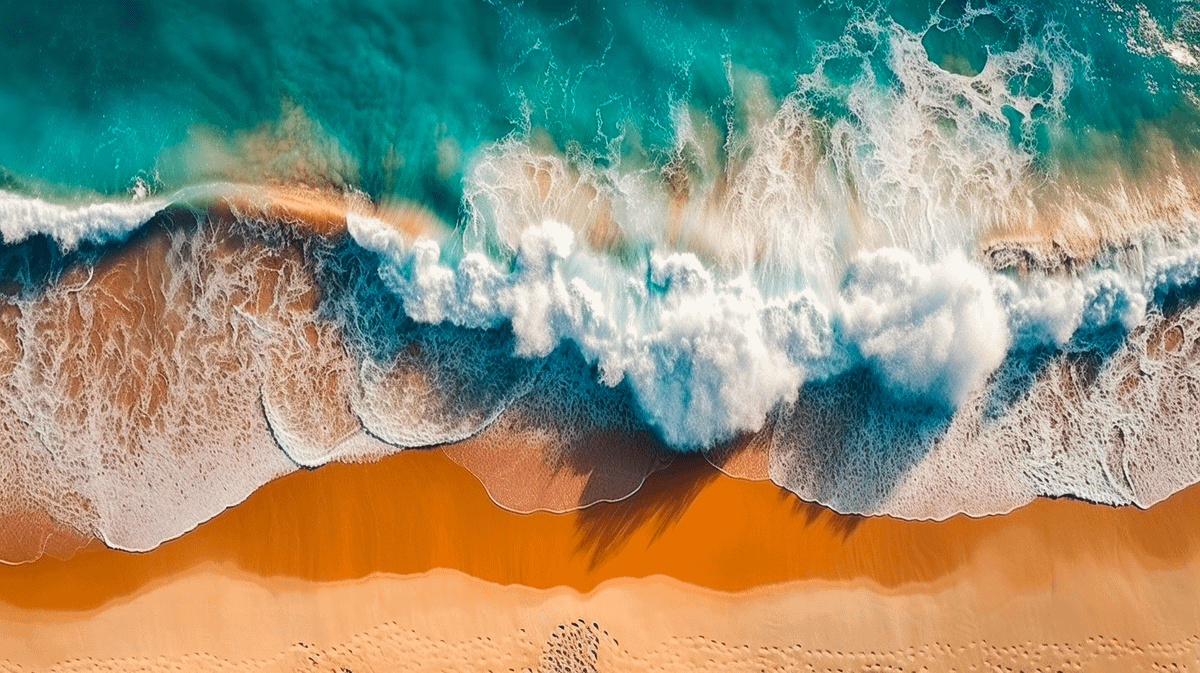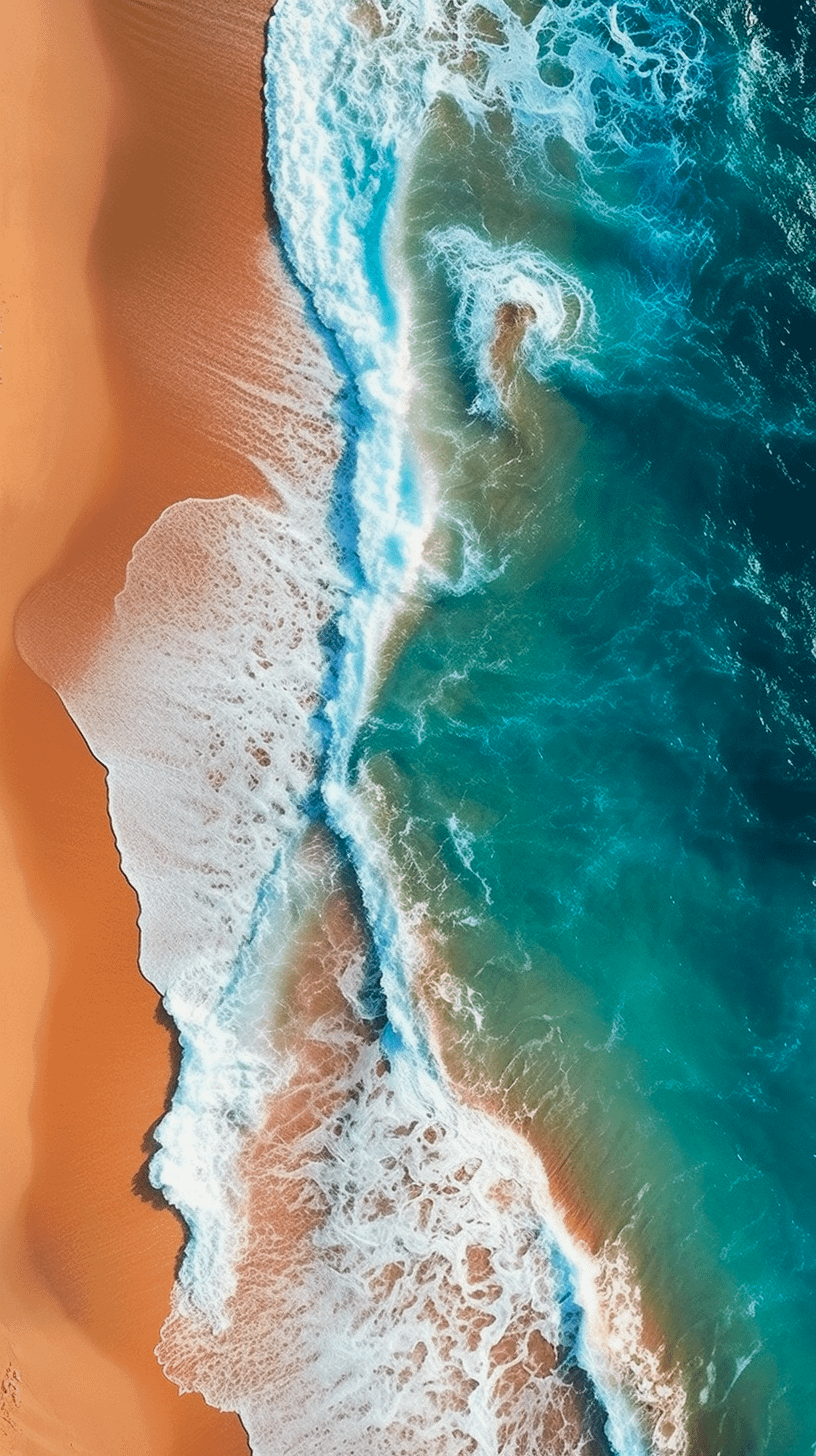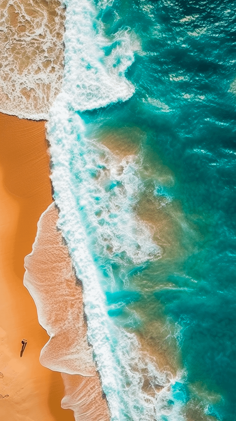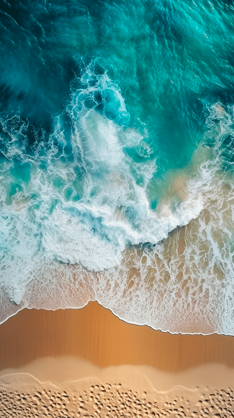 💬 Aerial shot of a wave hitting the beach, ocean, white sand, vertical, sunny, holiday, luxury, photography winning award --ar 9:16 --s 750