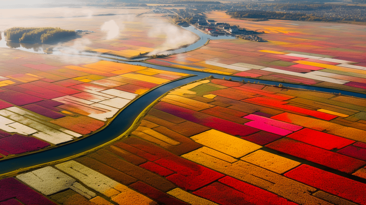 We can also travel the world. Let's visit the Netherlands and the flower fields. I'm sure it does not look anything like this. But at least the voyeurist in me likes the feeling of seeing a version of it. AI or not.
