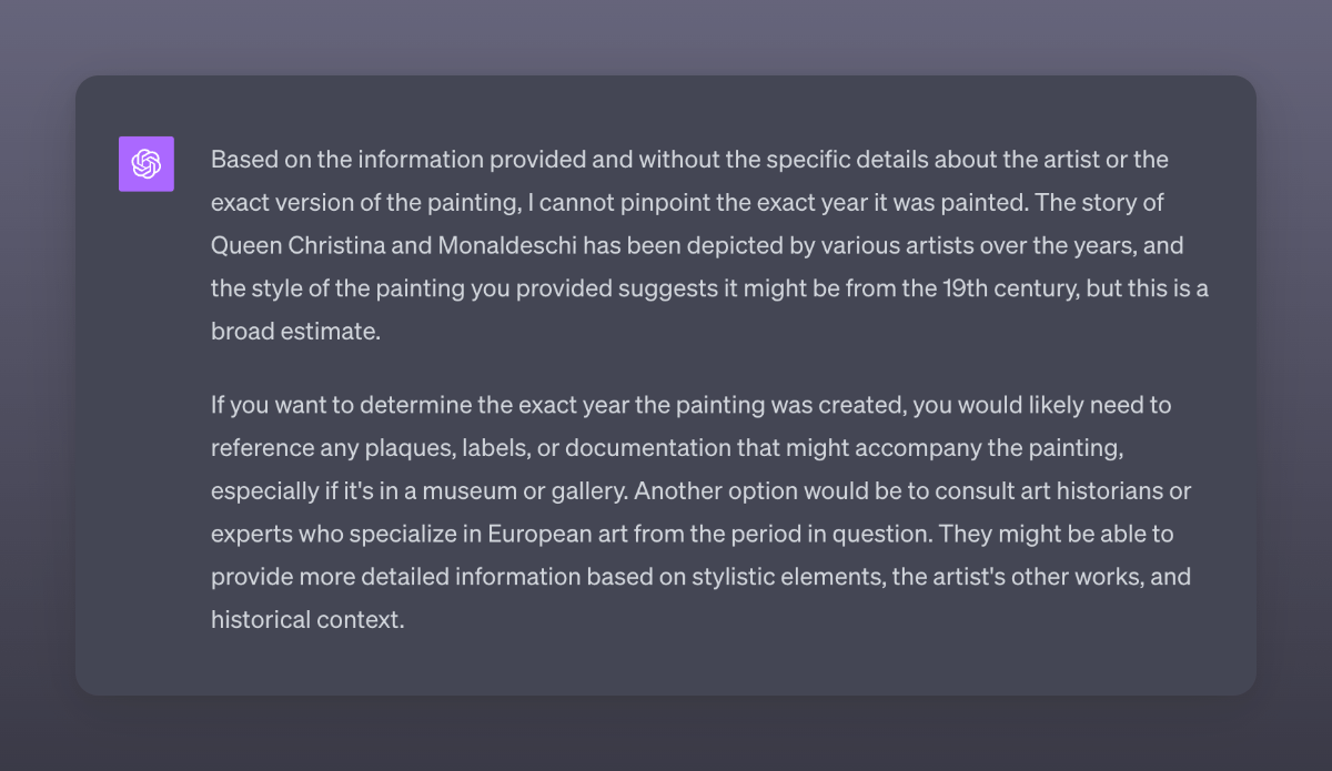 Yup, GPT4 nailed it, except it got the year wrong by 2 years, this painting is painted in 1853... Let's confront it.
