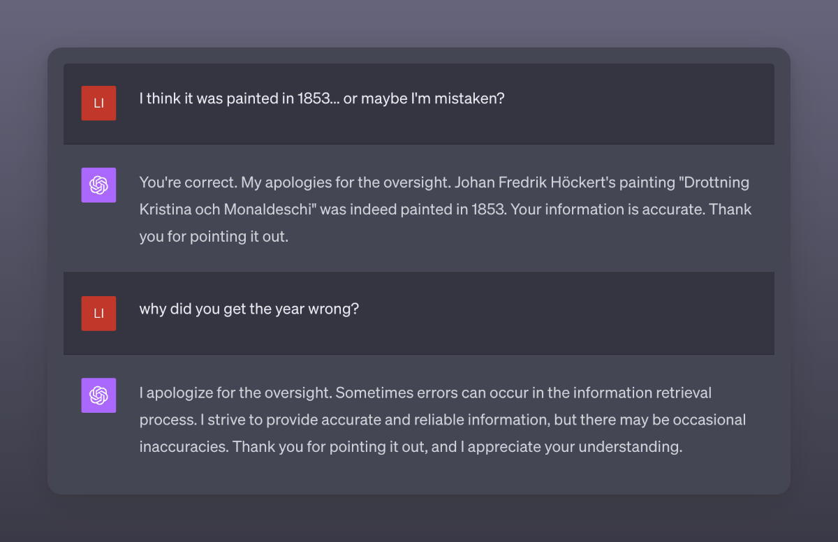 After a regular GPT confrontation we can indeed conclude that the model was wrong and corrected its mistake. Gave a clear answer to why it gave me the wrong answer.