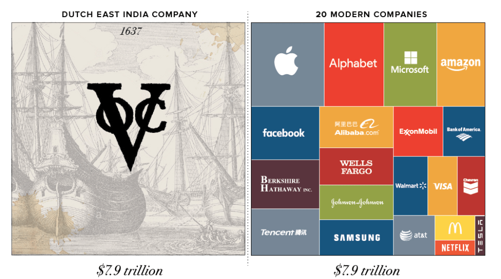 The VOC is considered to be the largest company to have ever existed, rivaled only by their contemporary, the British East India Company.