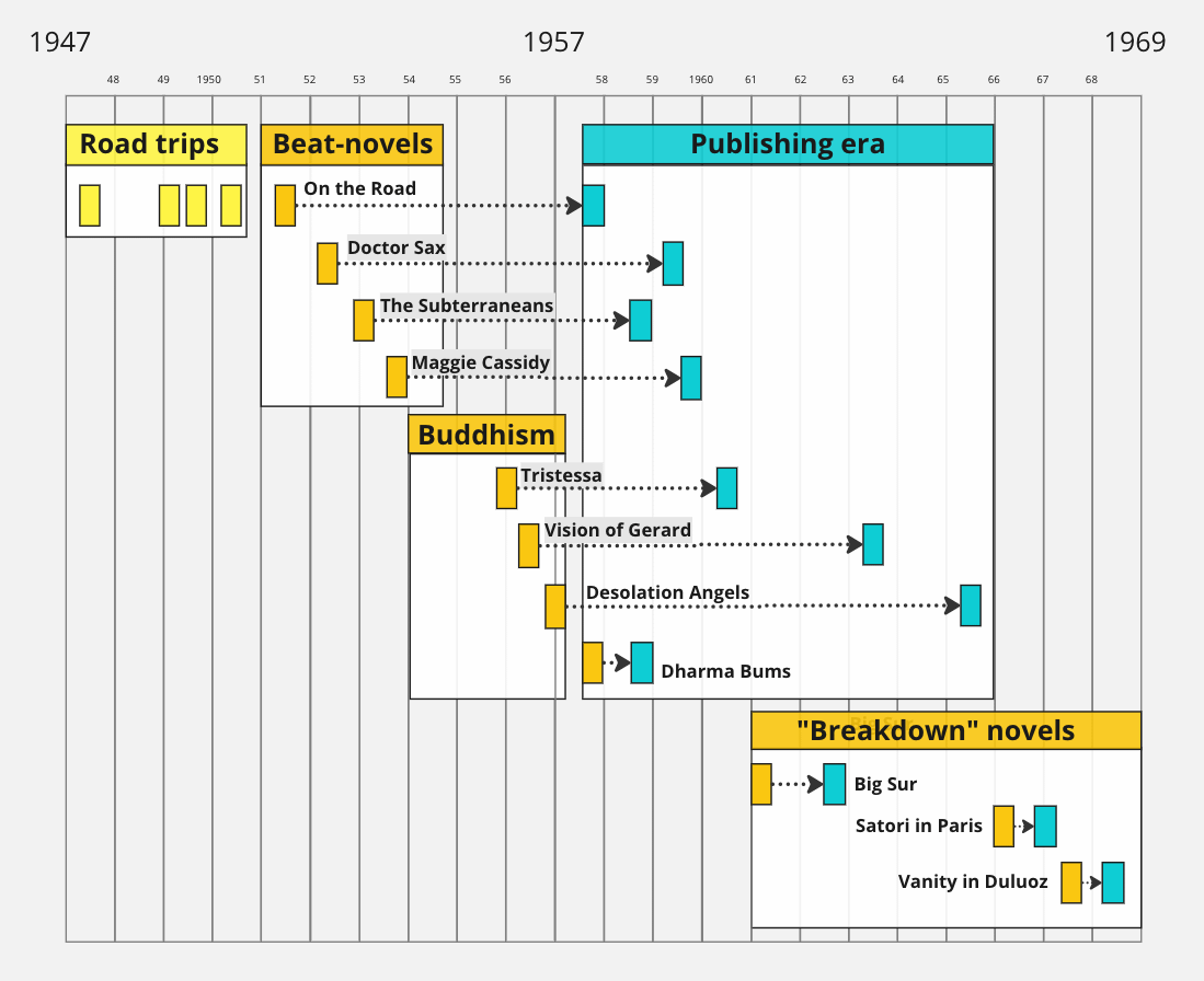 Follow me here on Twitter if you want to see sentences & paragraphs from Kerouac (and others) visually deconstructed.