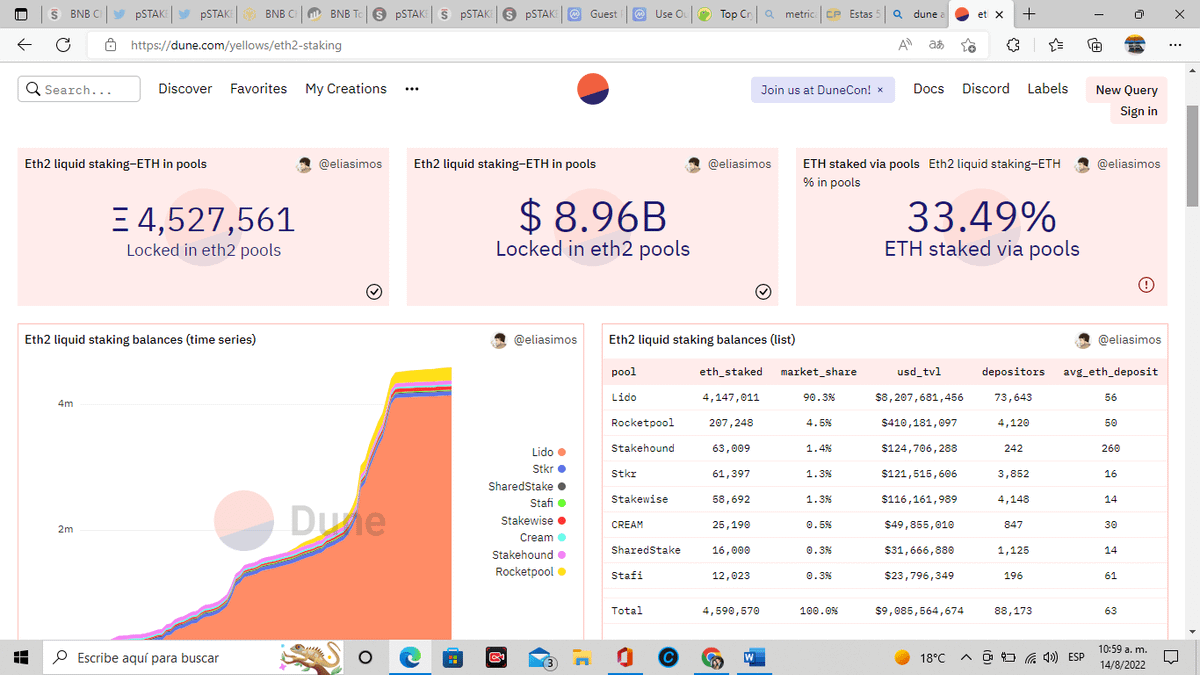 Currently, it is estimated that $8.9 billion is locked in the liquid staking pools of the Ethereum network, which represents approximately 33.5% of the value of Ethereum in the network, according to data provided by @DuneAnalytics