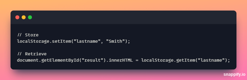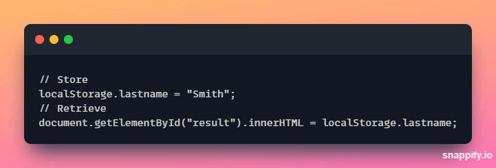 β’ Create a localStorage name/value pair with name="lastname" and value="Smith" .