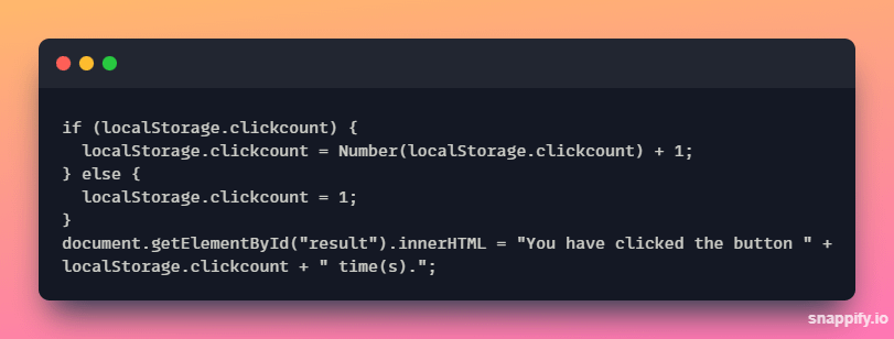 β The following example counts the number of times a user has clicked a button, in the current session.