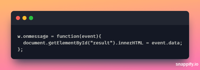 β The important part of the code above is the postMessage() method - which is used to post a message back to the HTML page.