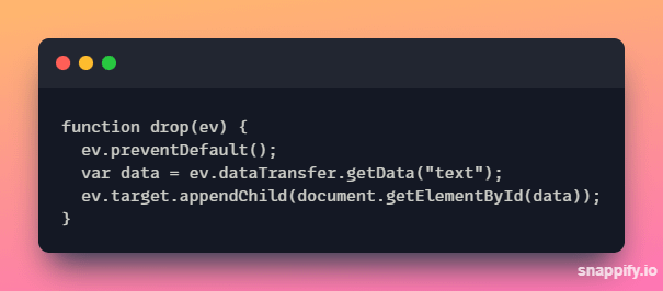 → In the example above, the ondrop attribute calls a function, drop(event).