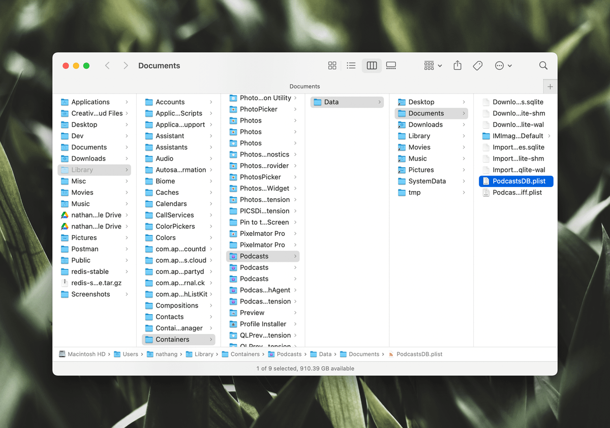 On macOS, you have to root around the system directories to locate `PodcastsDB.plist`. From there, you can convert it to an OPML to be imported into another app.