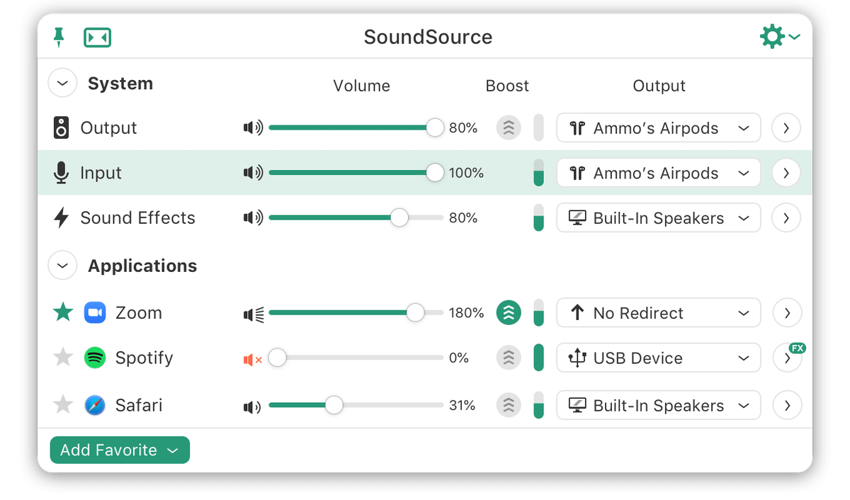 The system volume control is a bit simplistic for my needs. It doesn't have Per-App Volume Control, Fast Input Switching, or Multiple Output Destinations. @RogueAmoeba’s SoundSource steps into that gap.
