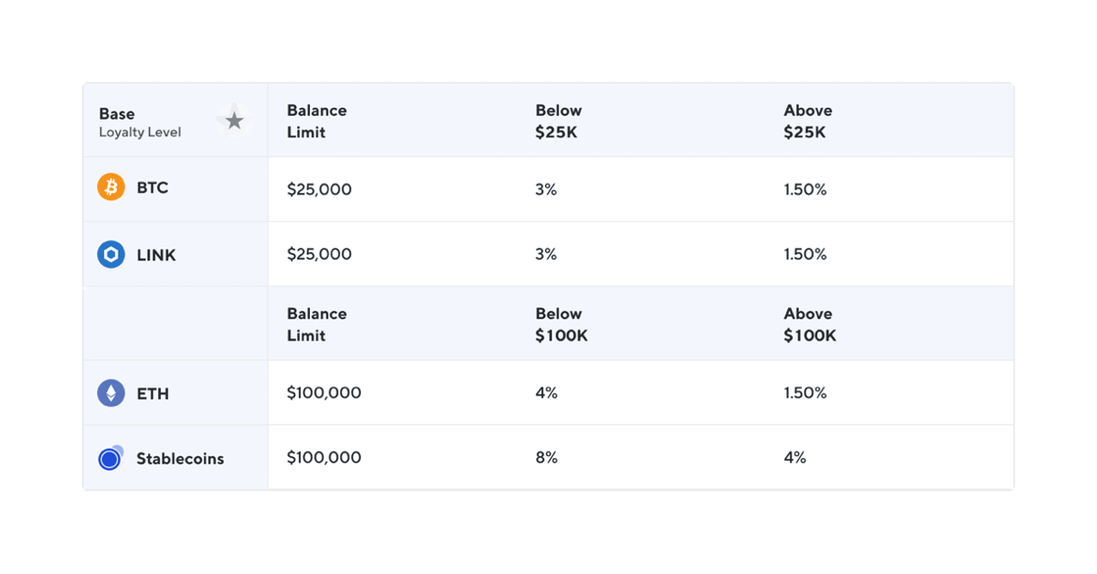 Nexo extends the assets from its Earn product as loans to clients looking to borrow against their crypto in one form or another. Higher yields are subject to fixed terms, thresholds & token requirements to keep effective rates paid on our AUM well below the theoretical maximum.