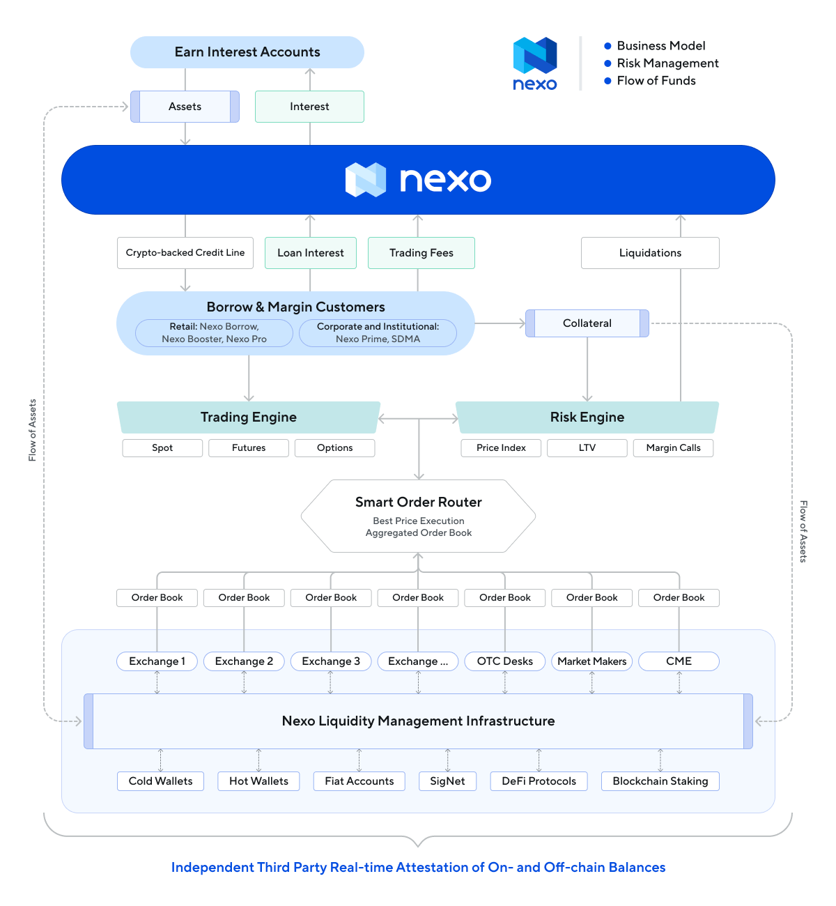 All these activities – exchange services, crypto-backed loans, collateral liquidations, staking, etc. are revenue generators that require Nexo to hold on and move balances across a number of exchanges & DeFi protocols as part of our standard operations.
