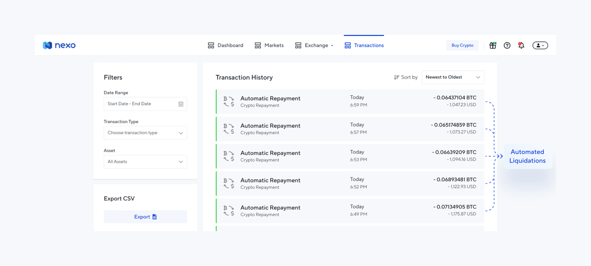To protect both clients that pay us interest and those we pay interest to, Nexo has the most efficient price-based collateral liquidations engine, and it has been battle-tested since 2018 in periods of high volatility without ever having lost a dollar.