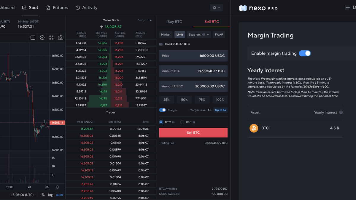 The spot, futures, and options trading we offer via Nexo Pro and @NexoPrime accounts is a natural extension of our lending services, as margin is essentially a loan for the direct purpose of leveraged trading. Funding rates and fees can be significant in volatile periods.