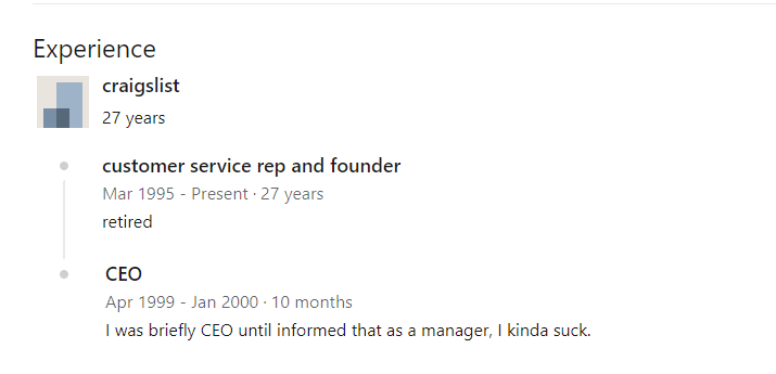 Но в его Линкд Ине есть вот такая примечательная штука.