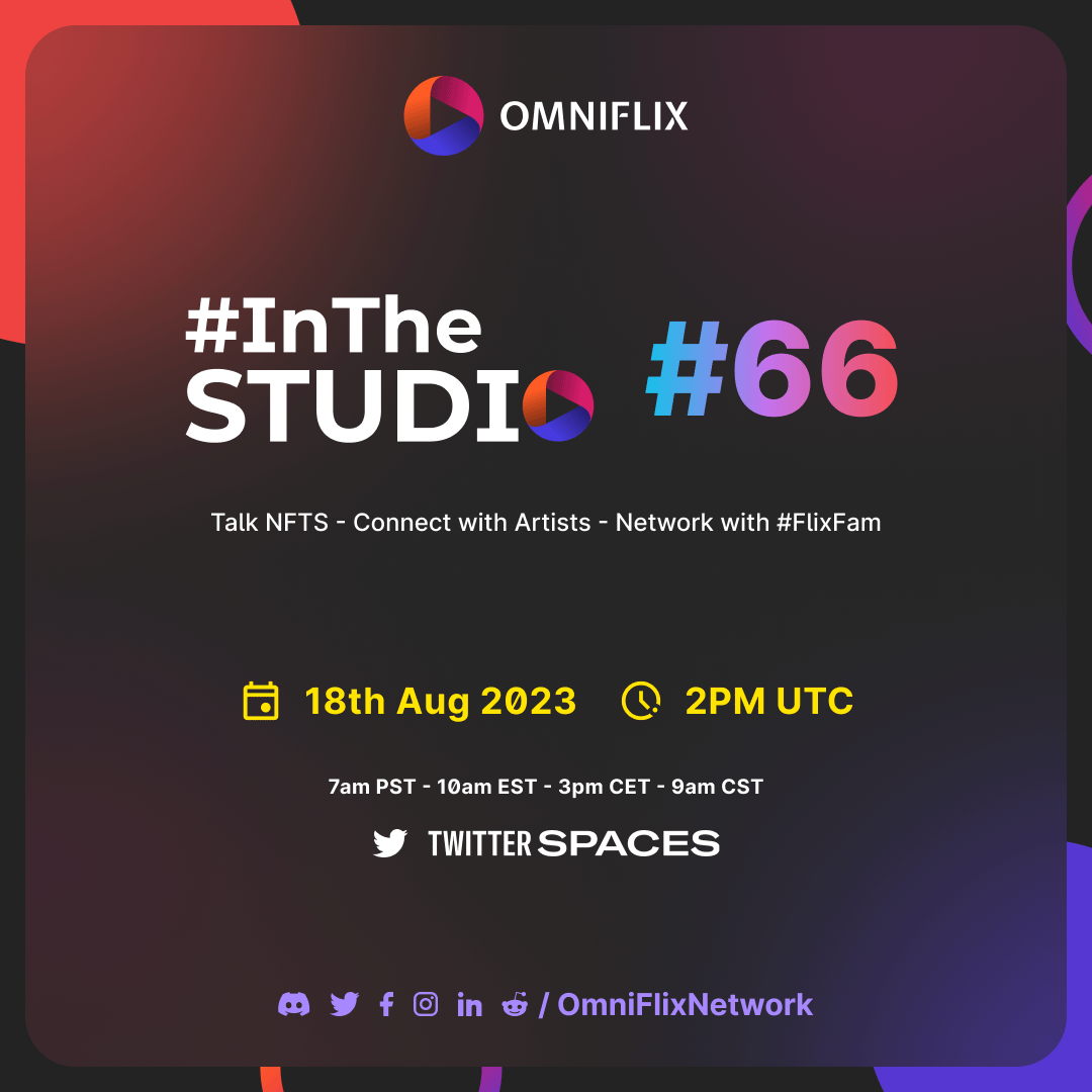 Ready for a deep dive into the Flixverse? Join us for #InTheStudio Ep. 66 on Aug 18, 2pm UTC! ๐ŸŽ™๏ธ Engage with creators, collaborators, and our vibrant community. Unearth the newest NFT collections and happenings! ๐Ÿ”ฎ ๐Ÿ”— twitter.com/i/spaces/1mnxeRARPwbKX