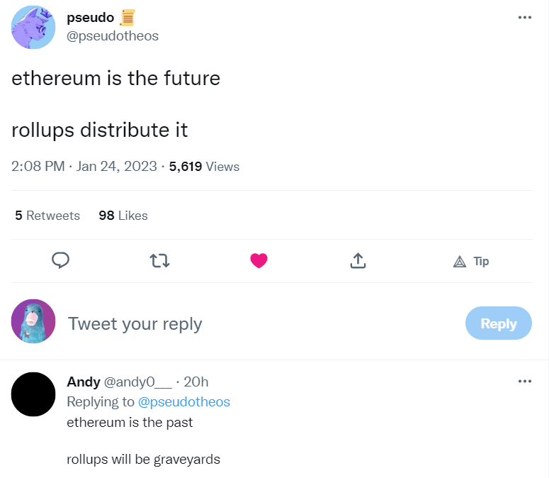 The beauty of cryptocurrencies is the ease of flow of assets between protocols and the ability to easily transfer digital ownership between people and platforms. As more rollups are built on top of one underlying network, the richer the ecosystem gets!