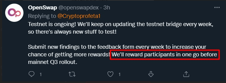 สิ่งที่ต้องทำ: - Swap ไปมาระหว่าง Avax-BSC-Kovan (5-10 ครั้ง) - เพิ่ม/ถอน liquility (ลองถอนทั้ง 50% และ 100%) - Queue: ให้ลองใช้งาน Priority, Range, Peged Queue มีทั้ง Add/ Remove/ Disable/ Enable/ Auto Replenish... Bridge/NFT/Earn ยังใช้ไม่ได้รอเขาอัพเดทเพิ่มเข้ามาก่อน.