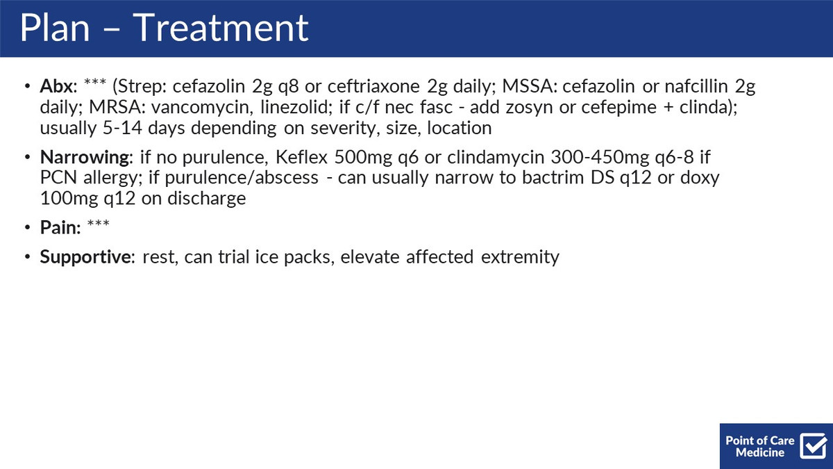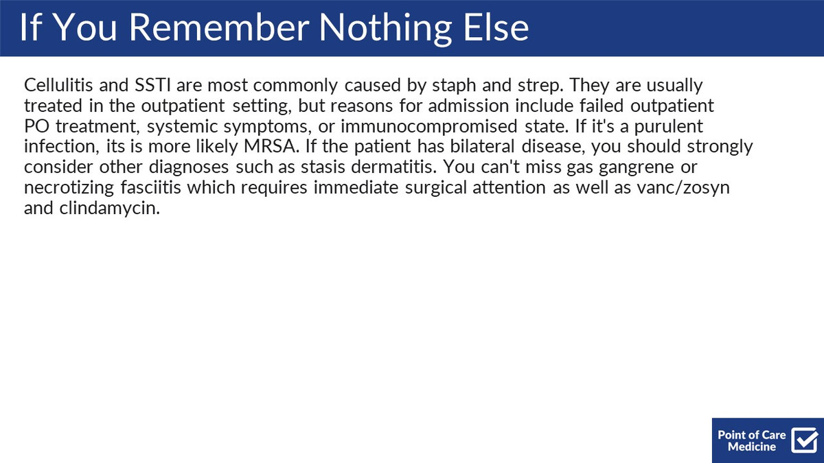 Cellulitis is one of the most common outpatient presentations and is pretty straightforward.
