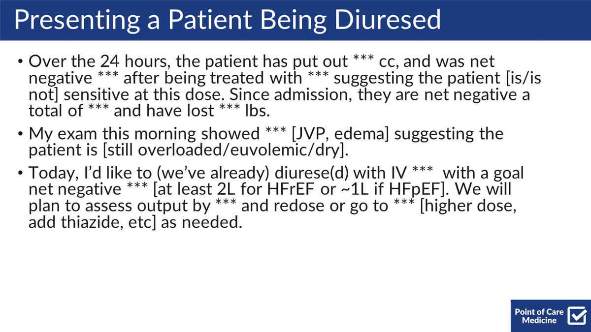 Here's a sample template for presenting a patient on morning rounds who is being diuresed.