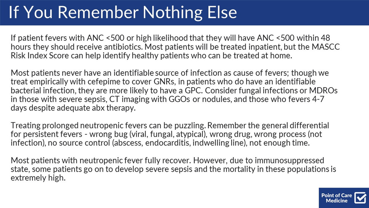 The MASCC Risk Index Score can be helpful for identifying low-risk patients who can be treated outpatient, but it includes subjective criteria.