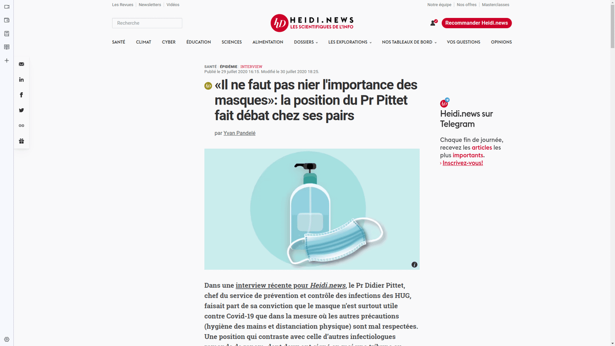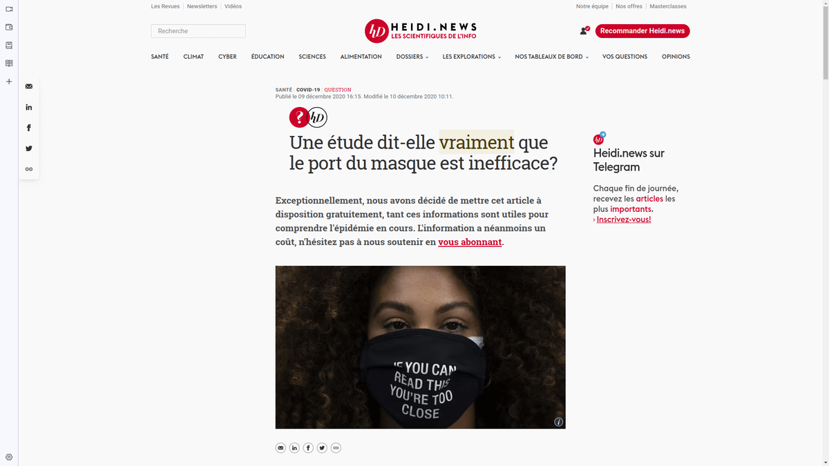 Je vais prendre le sujet des masques, que je suis en train d'explorer pour une vidéo. Sur ce sujet, l'équipe de @heidi_news a-t-elle