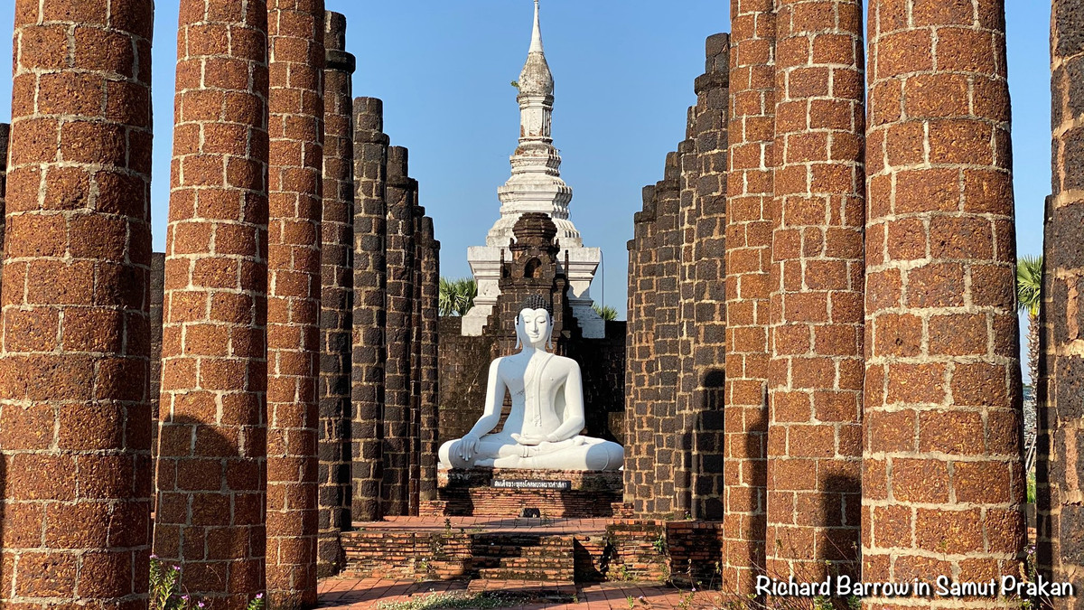 If you're short on time to visit Sukhothai Historical Park, don't worry. You can still experience the beauty of the Grand Hall of Wat Mahathat in Ancient City, #SamutPrakan. Here, you'll find this iconic image along with the Standing and Walking Buddhas from Sukhothai.