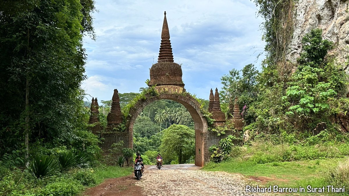 📷 08 - KHAO NA NAI: On the completion of my tour of Khao Sok National Park, I did a few stops on the way back to the station. The first one was at Ban Khao Na Nai. The highlights were the entrance gateway and the stupas on top of limestone cliffs.
