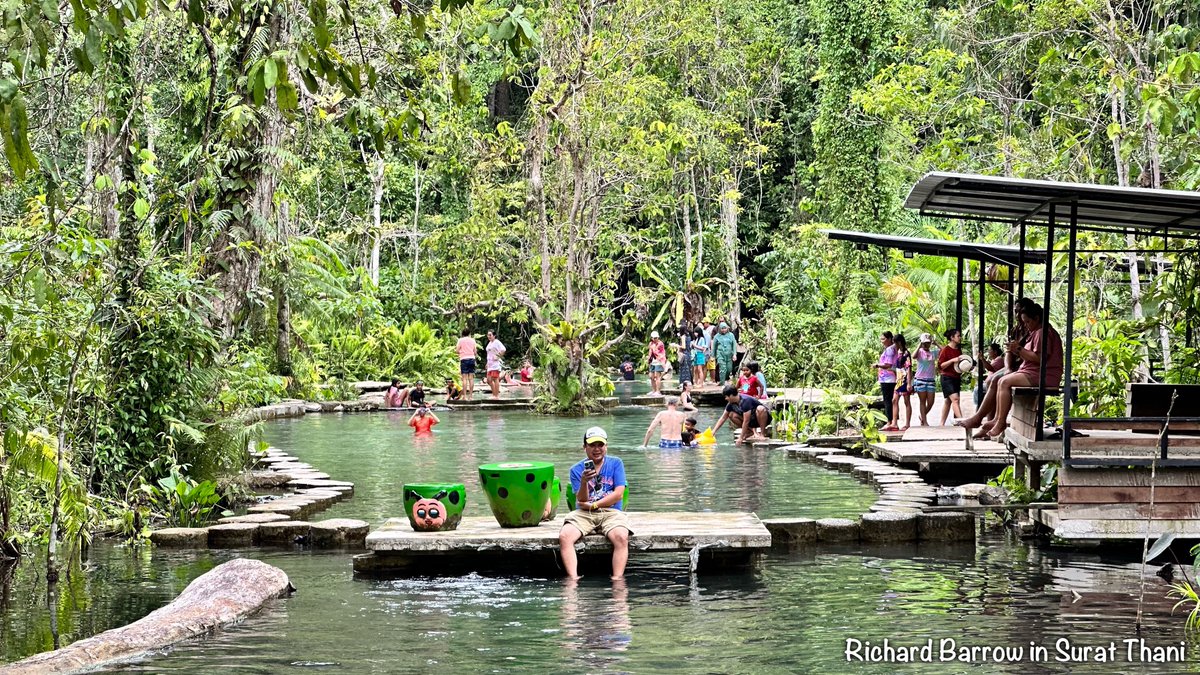 📷 09 - BAN NAM RAD HEADWATERS FOREST: Our second stop was at a crystal clear pool in a forest. You can paddle a boat down the stream or swim in the turquoise water. Very popular with families at the weekend.