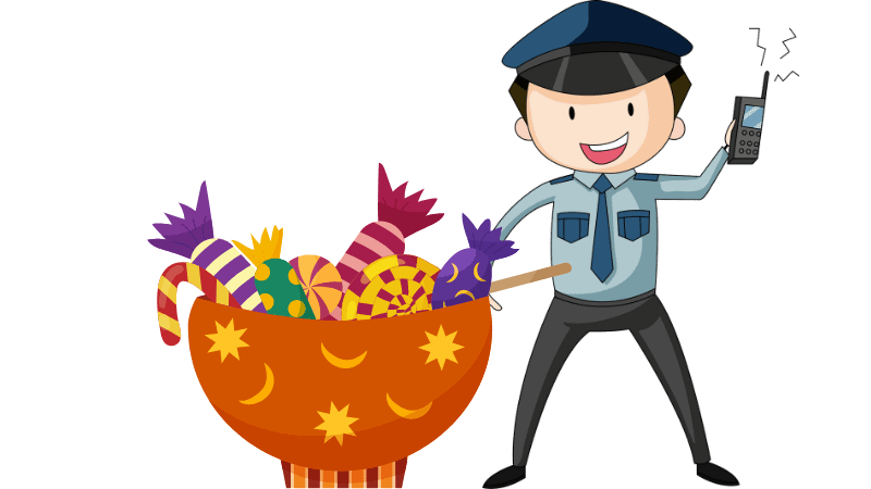 Standing behind the bowl there is a security guard (or a kid in a security guard costume...cuz...it's Halloween).