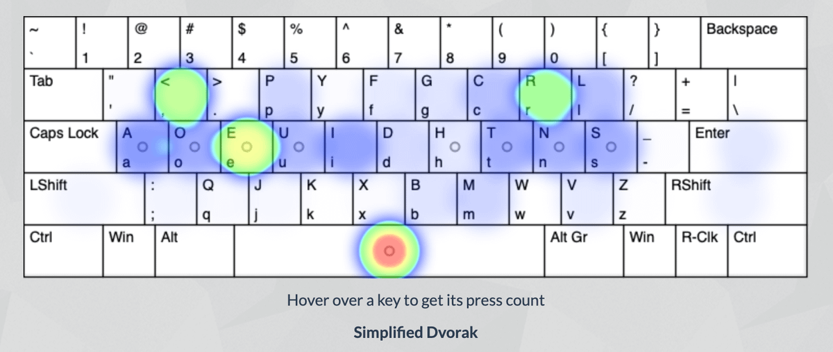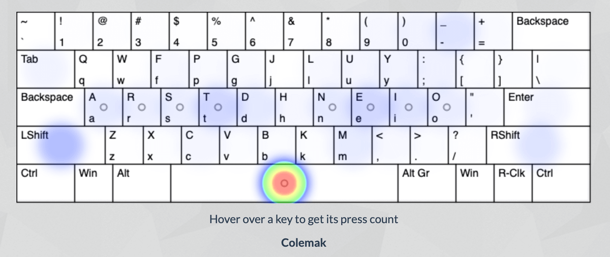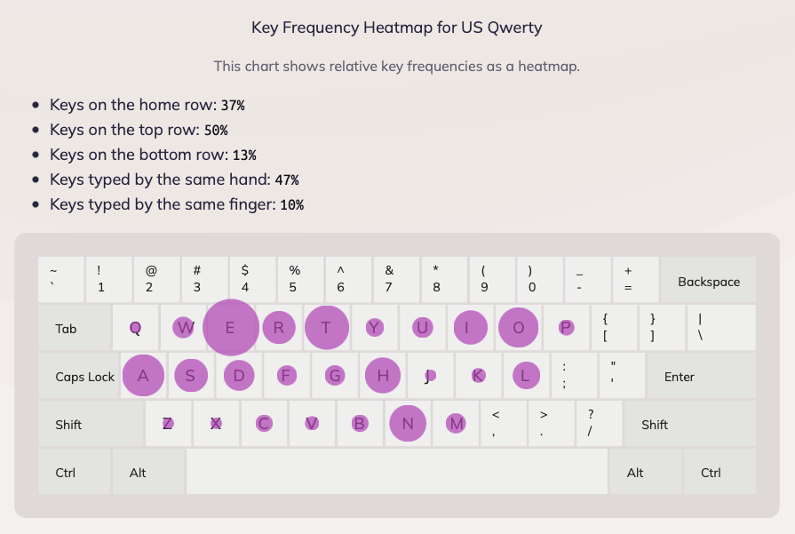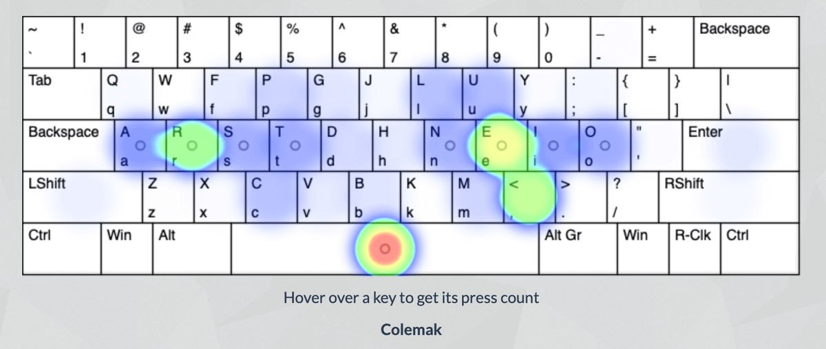 D'après keybr.com, voici la répartition les touches les plus utilisées en anglais. C'est assez chaotique.