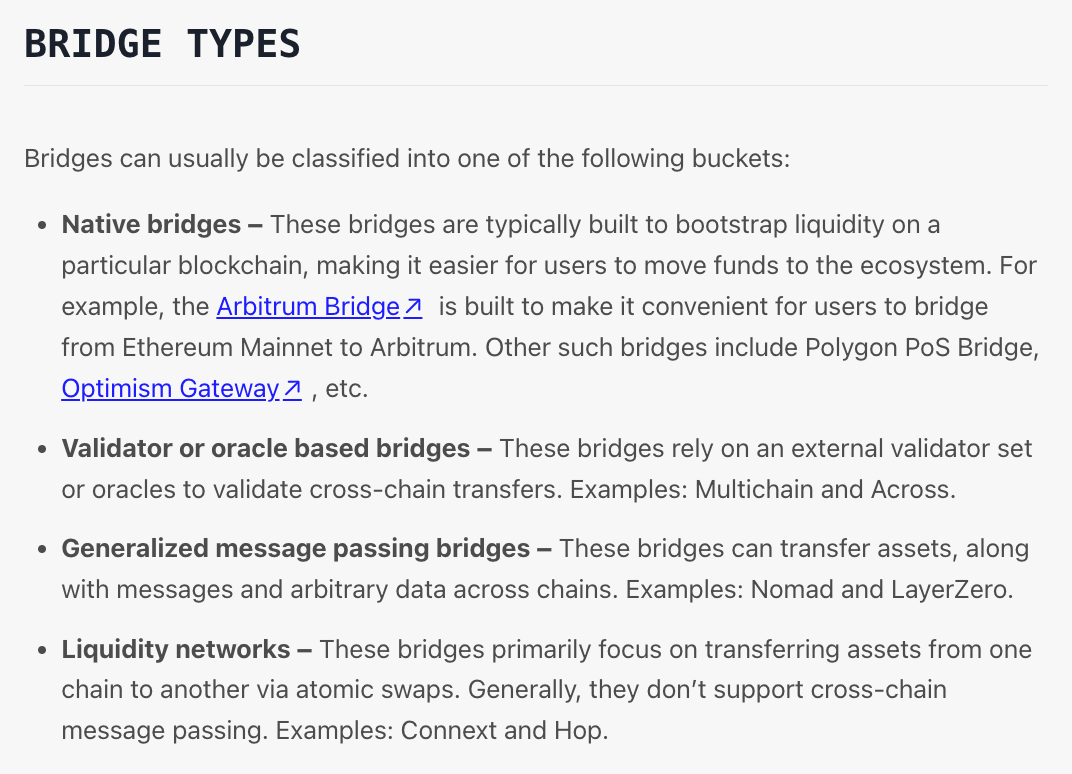 (21/25) Bridges rely on: - Trust in all the smart contracts, across every deployed chain - Trust every deposit will be honored - Trust the bridge operator is able to keep everything in sync - Trust the bridge operator doesn't issue extra synthetic tokens - And many more