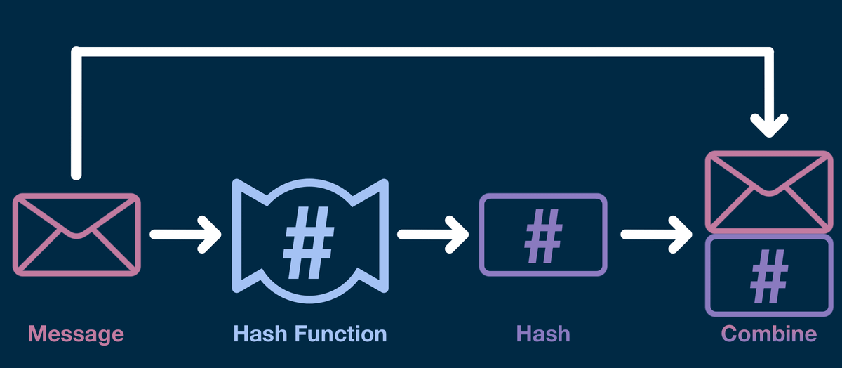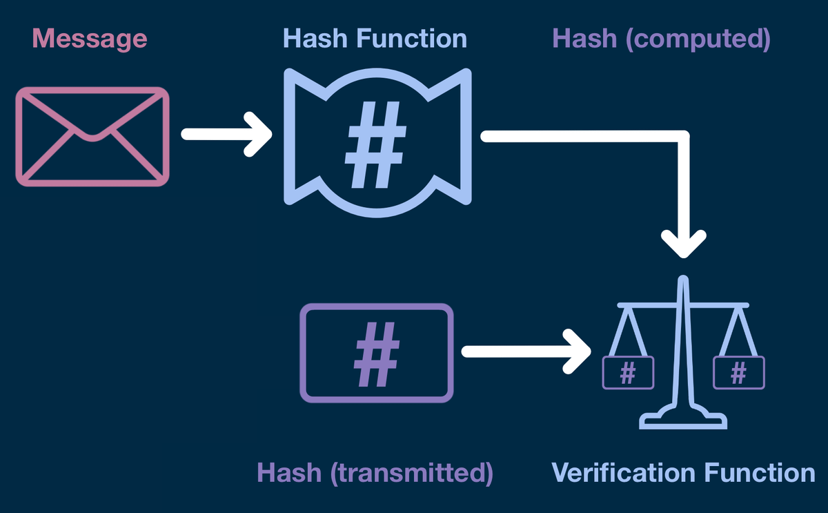 Finally, the verifier will feed this computed hash and the (decrypted) transmitted hash into the verification function.