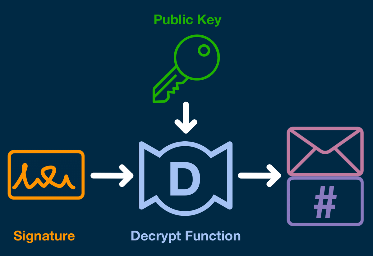 To begin, we need to undo the encryption process, which transformed our combined message-hash into a single piece of opaque data.