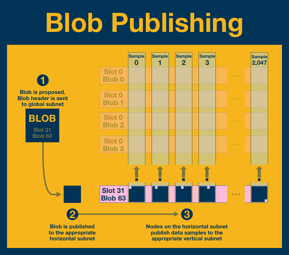 2) the proposer broadcasts the blob to all peers on the appropriate horizontal subnet.