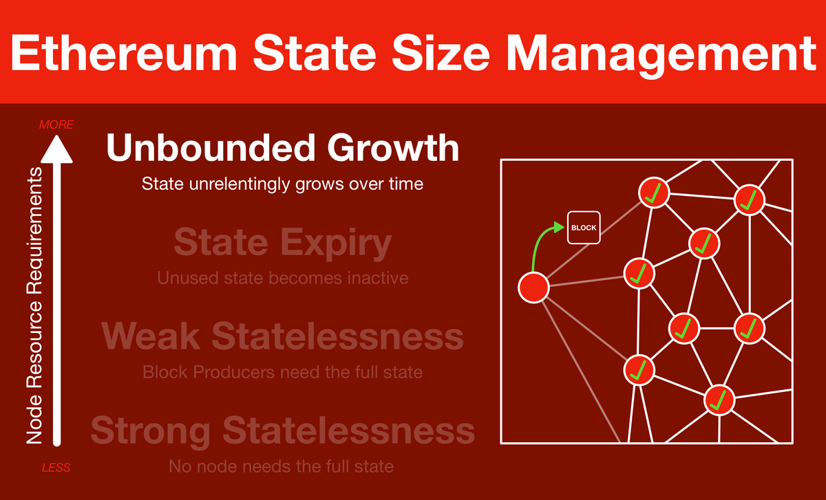 (9/22) Today, the EVM state operates in a mode of unbounded growth. Not only is this the most resource intensive way of managing the EVM state, it continues to grow over time.
