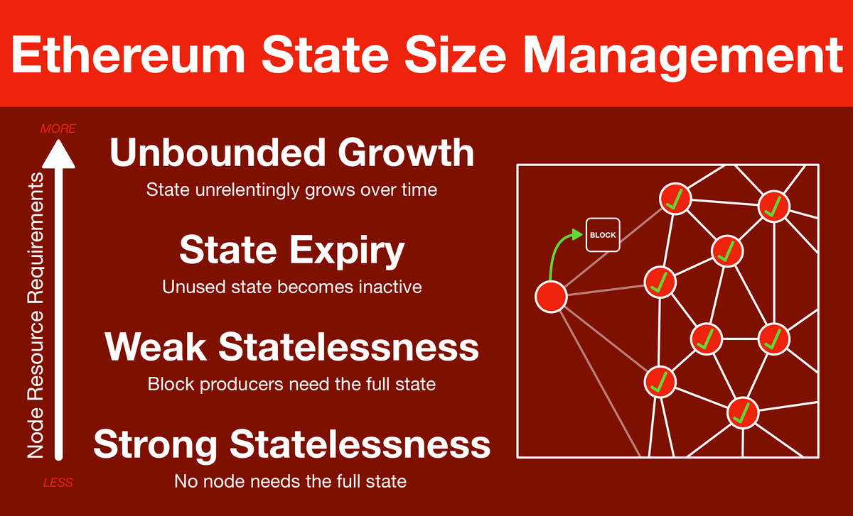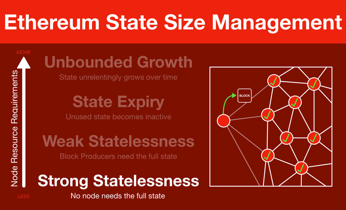 (18/22) At the end of the spectrum is Strong Statelessness, the idea that no node (or block producer) needs to hold the state.
