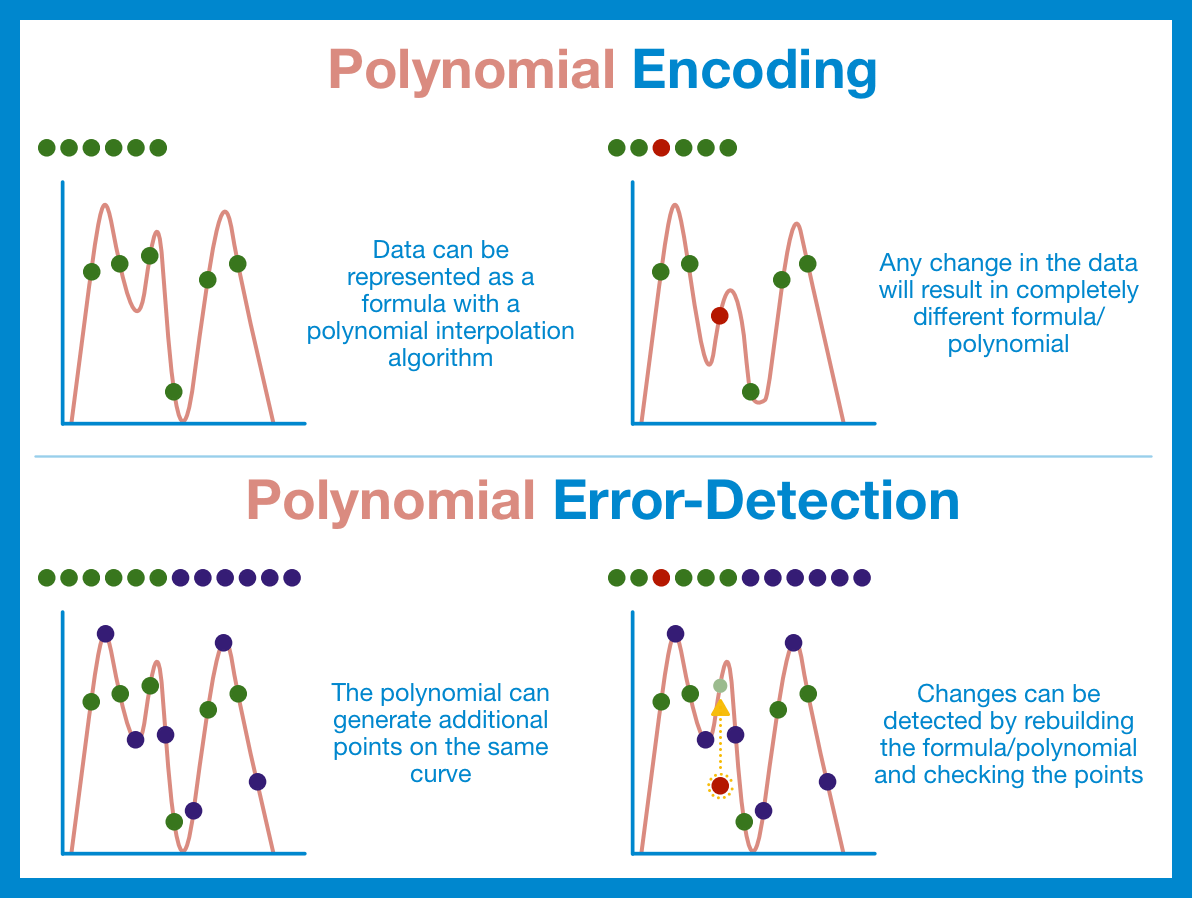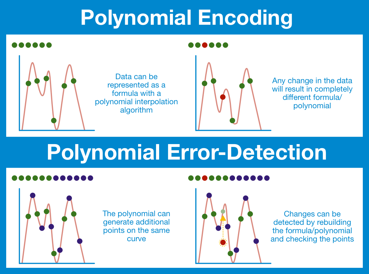 These additional points convey enough extra information that we can reconstruct the underlying polynomial and use it to double check all the points.