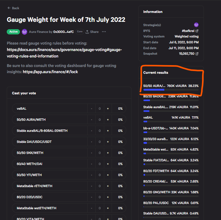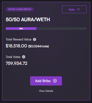 There are even hefty bribes for the $AURA / $ETH LP and currently voting numbers reflect that.