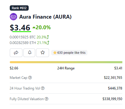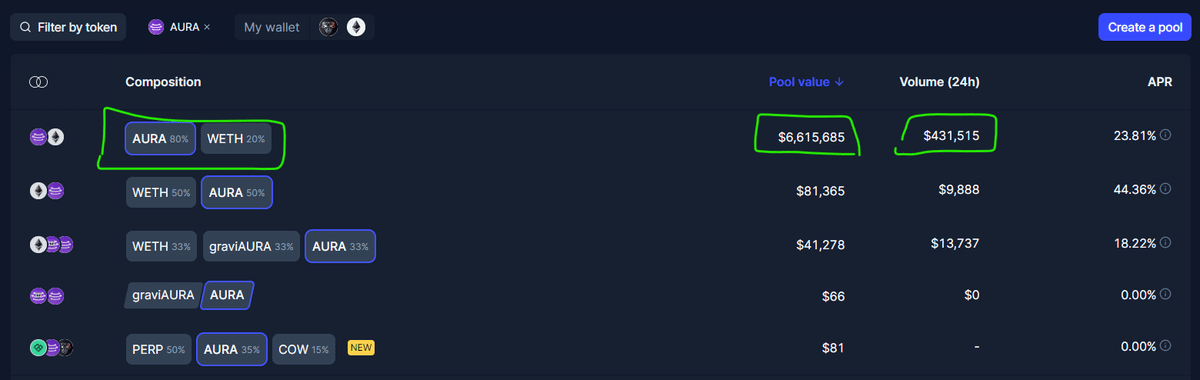 $4.6M worth of AURA earning $350k in WEEKLY rewards is massive! Paired with ETH leads to about 200% APR by my calculations at current prices. If whales continue to lock and accumulate more AURA, LP is currently the best strategy to heavily stack early on.