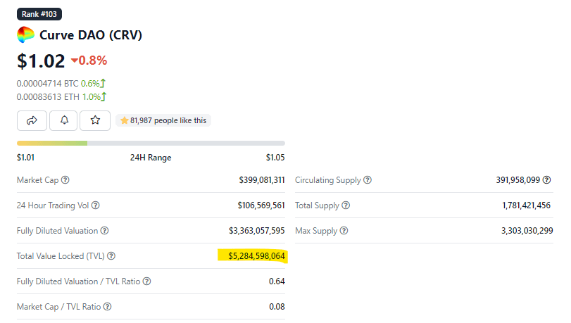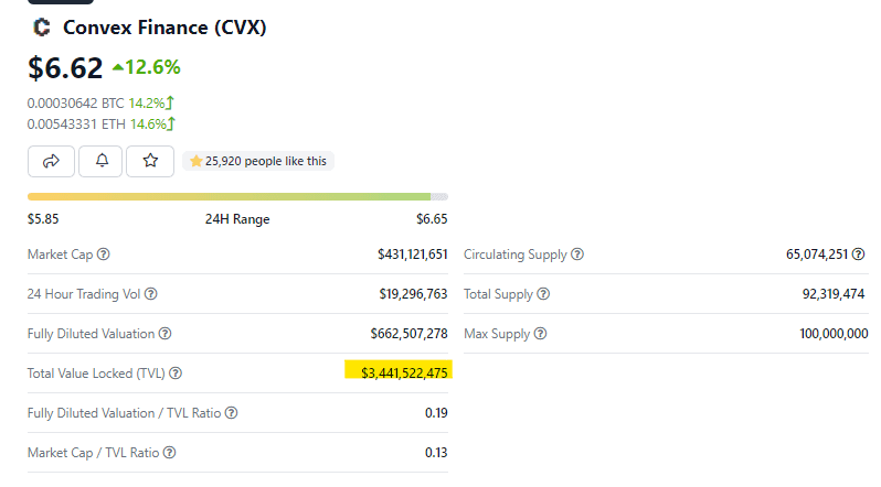 Current $CVX has about $3.4M of TVL compared to $5.2M on Curve Finance. 65% of CRV TVL is on Curve Finance by this estimation.