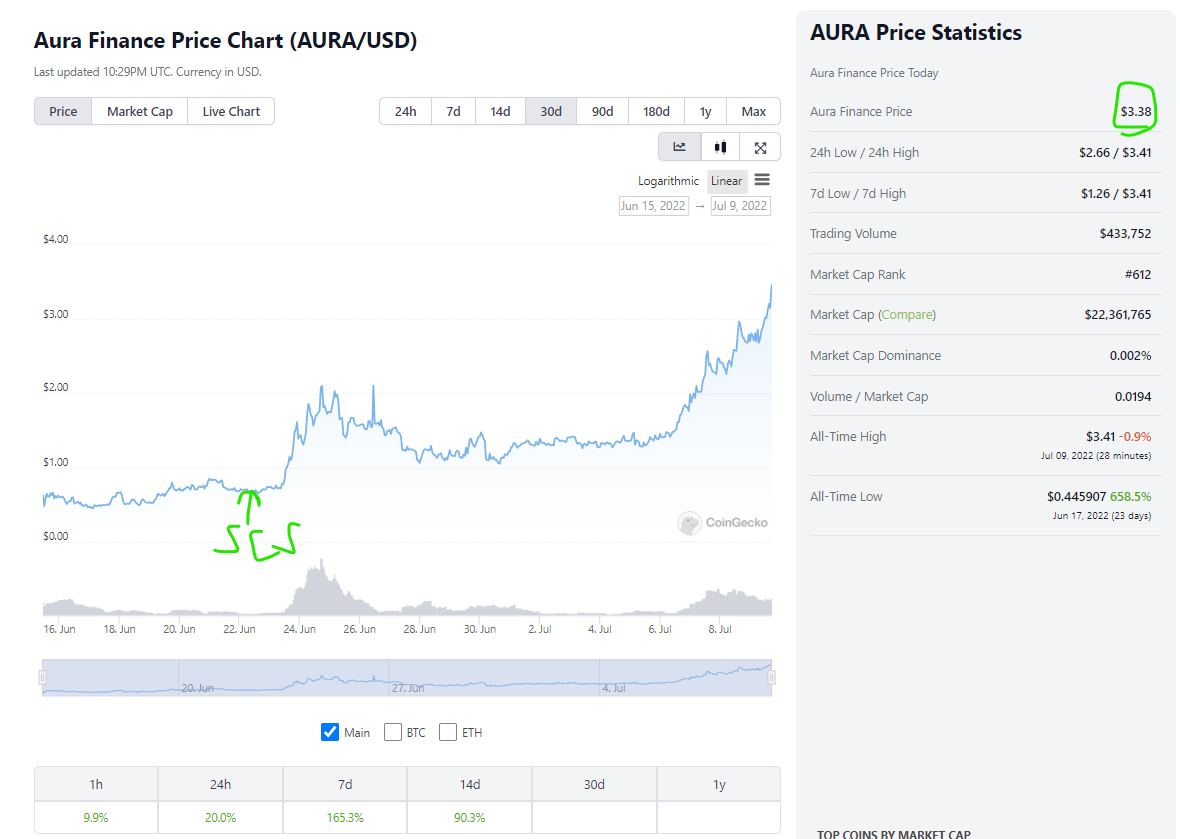 Since this original call @ $.70 per $AURA the token has done 495% in just over two weeks.