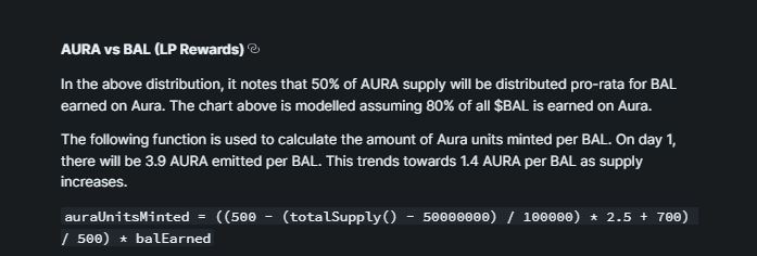 On top of the $96k of $BAL rewards, AURA docs show that for every $BAL distributed there will 3.9 $AURA distributed. That's 73,515 AURA for the AURA / ETH LP worth $246k on top of the $96k $BAL rewards... ALL IN THE FIRST WEEK!