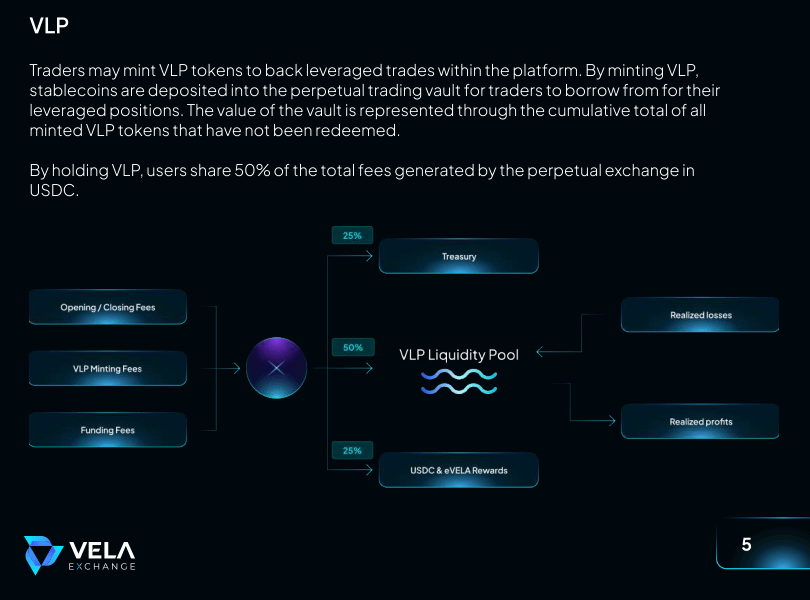 Instead of being a basket of assets like $GLP, their $VLP is backed entirely by $USDC. They are able to do this because of synthetics and it takes away the IL risk out of providing liquidity.