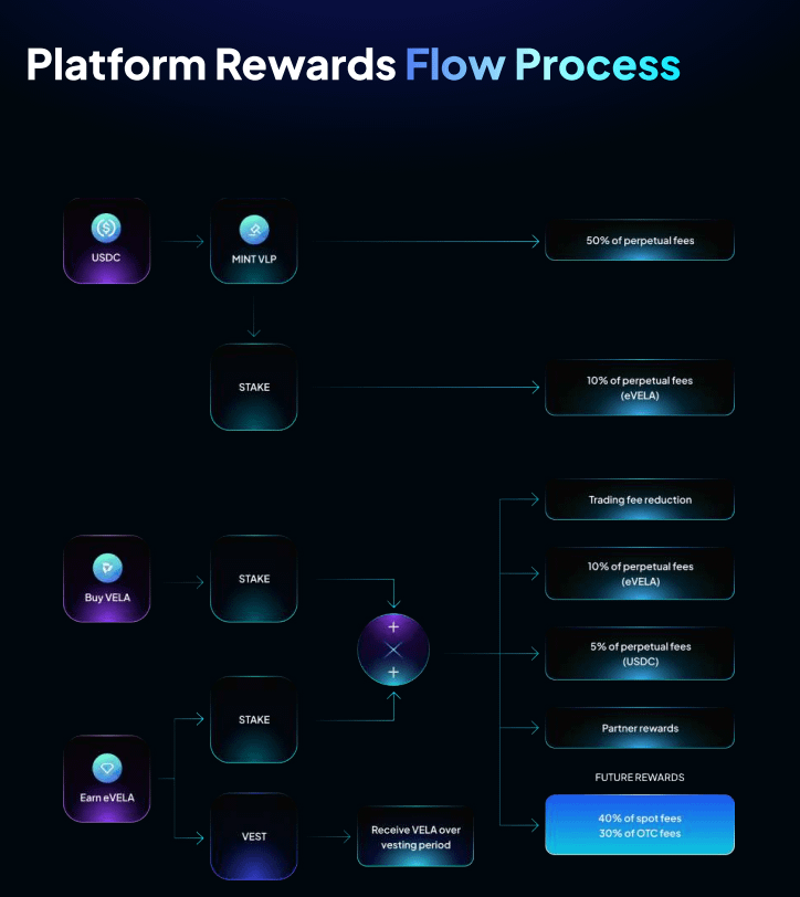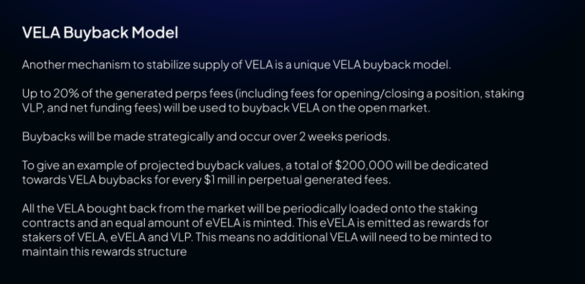 Once fee payouts kick in their buyback model is elite. They will be using 20% of fees to purchase $VELA, convert it to $eVELA, and reward it to stakers