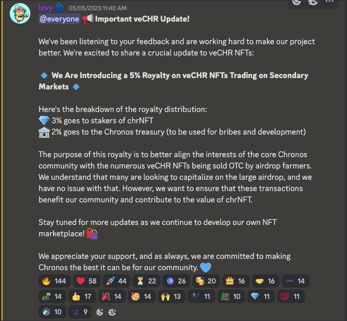3% of the secondary sales on $veCHR NFTs from @opensea are passed onto $chrNFT stakers.