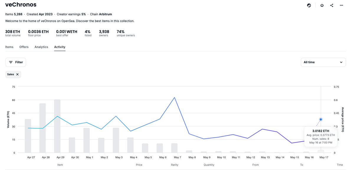 $veCHR NFTs are trading at ~30% discount compared to liquid $CHR and did 3 $ETH or $5.4k in volume yesterday.