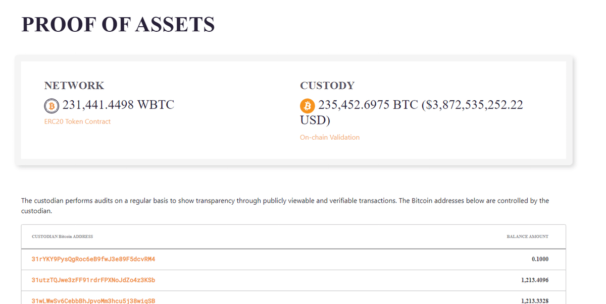 Checking the wBTC website and their proof of assets shows more than full backing so where is the issue? Taking a deeper look at asset custody was the next step.