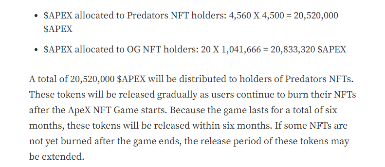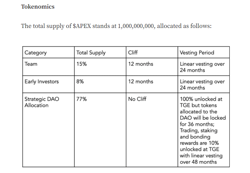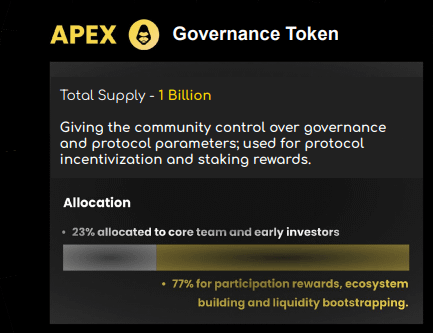 - 23% of $APEX supply is for the team and VC's backing the platform.
