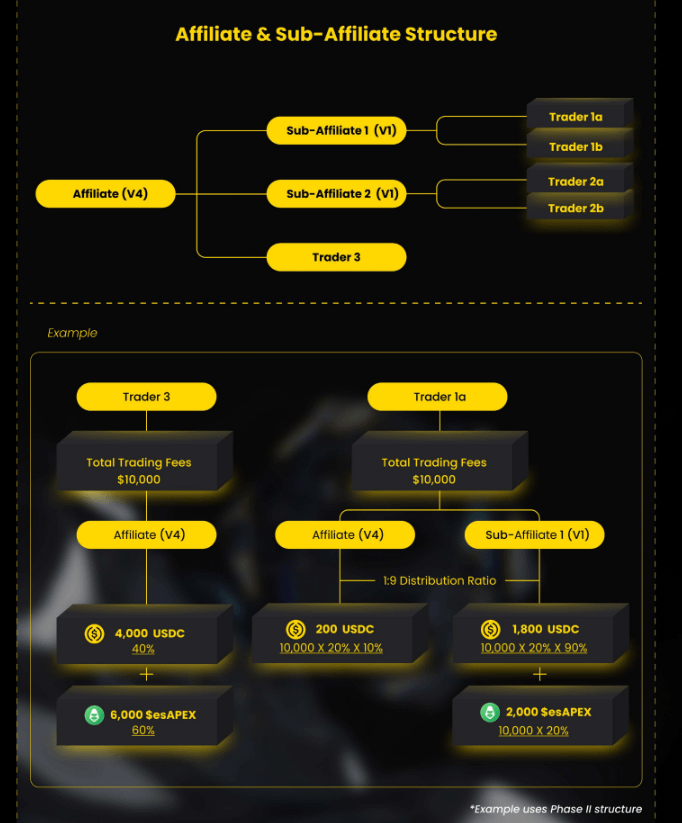 On top of massive $USDC / $esAPEX incentives, they also have a layered sub-affiliate program.
